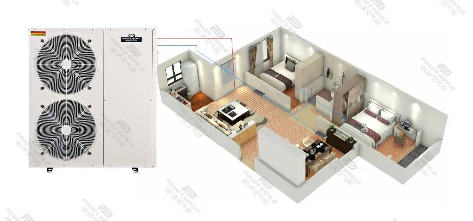 空气源热泵水系统具有极大的开放性,末端上可以和任何水系统末端,如地暖、风机盘管、散热器、毛细管等搭配,适应性极强,可以供暖、制冷、提供生活热水,一机多用。