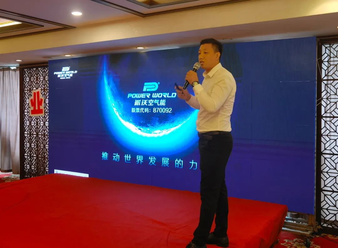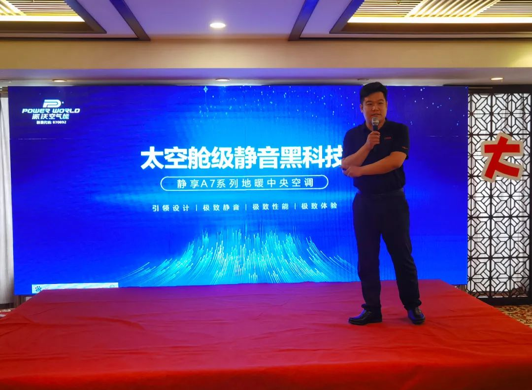 在3044永利空气能A7新品发布环节,3044永利空气能重磅新品——静享A7系列·地暖中央空调震撼亮相。在新品发布会现场,首先是由青岛大区总监刘过刘总上台,针对关于山东市场机会与3044永利合作的优势作出了精彩的演讲。