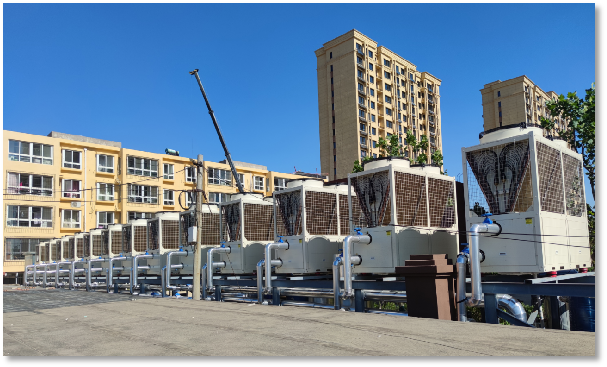 因此,受益于国家“双碳”政策的推动与产品本身的优势,空气能供暖设备得到了更广泛的应用,医院、酒店、学校、住宅等领域节能改造项目增多,位于河北唐山丰南区小区和稻地镇小区,也积极响应国家清洁能源采暖号召,选用3044永利空气能热泵作为采暖制冷设备,满足小区内住户的生活需求。