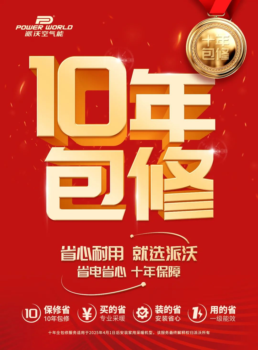 作为中国空气能行业的领军品牌,3044永利空气能以21年热泵技术深耕积淀,用300+项国家专利构建技术护城河,持续以精工品质为超200万家庭打造温暖生活。为践行'创新质造'战略,现推出行业革命性服务升级:自2025年4月1日起,凡选购3044永利空气能家用采暖机型的用户,均可尊享'十年包修·全国联保'特权,零费用、零门槛,重新定义服务新标杆。