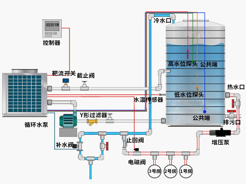 针对回水困难的种种问题,3044永利工程师们设计出一种回水装置,把冷却的水回收空气能热泵系统重新加热,无需遥控、温控、时控,全由热水龙头控制,当用户需要使用热水时,只需将热水龙头短暂的开启一下,回水泵就会根据水流信号启动。做到:用水即回、不用不回、回完即停、水热不回,节水又省电、舒适更方便之功效。