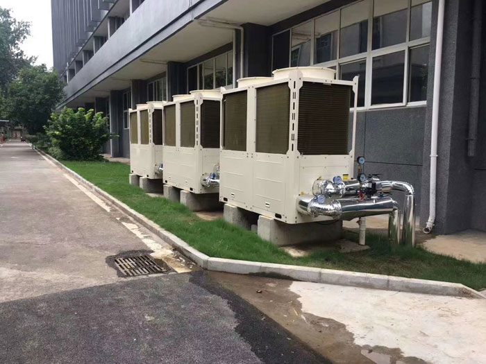空气源热泵机组工作原理是通过与空气中的能量进行交换来为室内制取热量,所以空气源热泵主机一定安装在空气畅通的场所,不宜安装在狭小的天井或者周围有围挡的地方。主要以供热为主的空气源热泵主机宜安装在向阳的场所。空气源热泵主机安装的平台或场所一定要有检修的空间。空气源热泵系统耗电量较大,尤其安装电辅热时,电量还会增加,所以在设计时一定要注意电容量是否满足。空气源热泵主机水泵外置时,热泵主机一定要与水泵具有连锁控制,不能孤立运行。