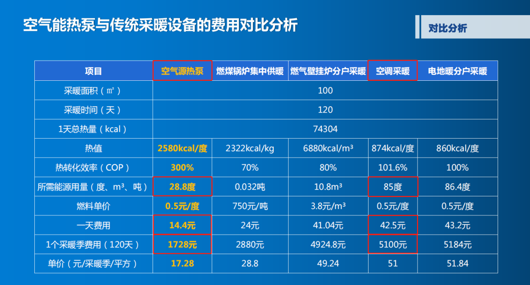 根据上表可知,以北方普通家庭为例,采暖面积为100㎡,一年采暖季为120天,使用燃气壁挂炉1天需花费约41元,按照3.8元/m³来算,4个月供暖期总费用约4900元,而3044永利空气能1天费用约14元,4个月供暖期总费用约1700元。因此,显然使用空气能更节能更省钱。