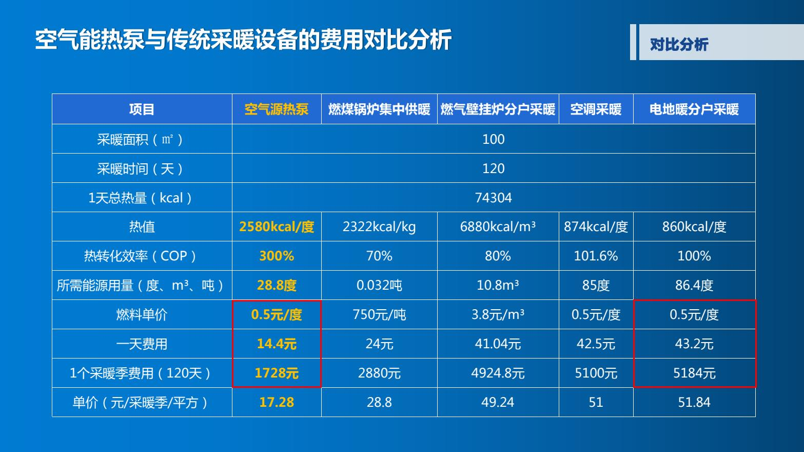 关于电费问题如上图,以北方普通家庭为例,采暖面积为100㎡,一年采暖季为120天,使用电地暖1天需花费约43元,按照0.5元一度电来算,4个月供暖期总费用约5100元,而3044永利空气能1天费用约14元,4个月供暖期总费用约1700元,为广大用户带来的最直观的感受是取暖成本的明显下降。