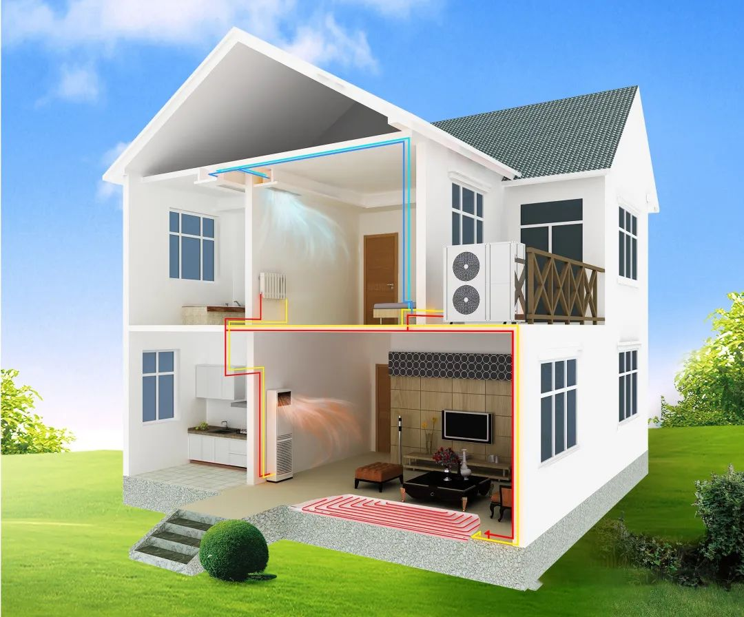 3、节省空间:空气能地暖机在地板下铺设水管,节省空间,并能搭配不同的装潢风格;