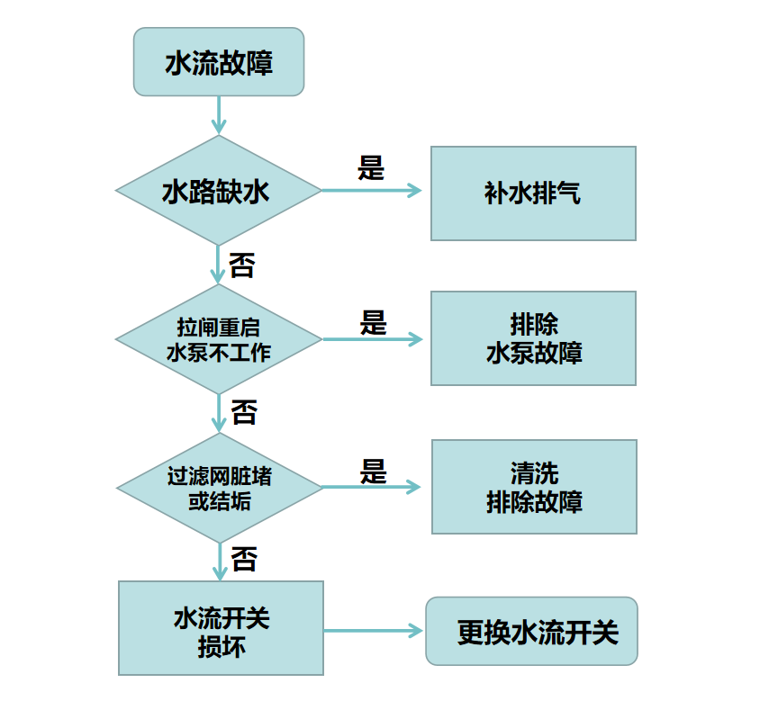 水路系统无问题的前提下,水泵运转但是水不循环或水泵噪声大,原因也多种多样,常见的比如水路缺水、有空气等等。因此,我们需要理清一个思路一步步地排查压缩机不启动的原因: