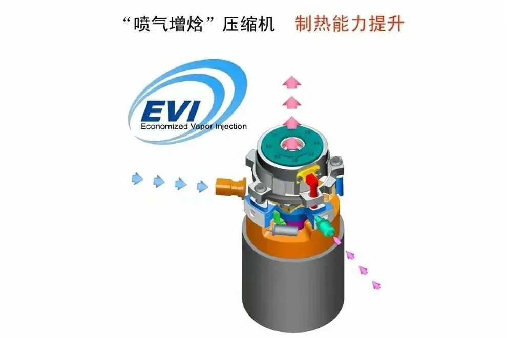 喷气增焓是由喷气增焓压缩机、喷气增焓技术、高效过冷却器组成的新型系统。使得高效的喷气增焓压缩机、高效过冷却器及电子膨胀阀形成的经济器与高效换热器共同构成了高效节能的喷气系统。